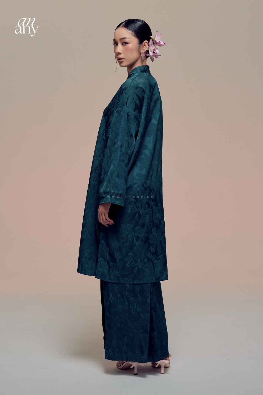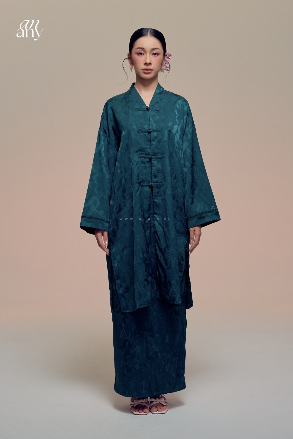 "Damai "  Kurong Belah Panjang A long, flowing silhouette that embodies calm and continuity. Rooted in the modest elegance of the Malay kurung Belah or Kurung Panjang, with gentle influences drawn from Chinese frog button closure.Damai Kurung Panjang is a reflection of unity,where culture meets, and harmony remains.