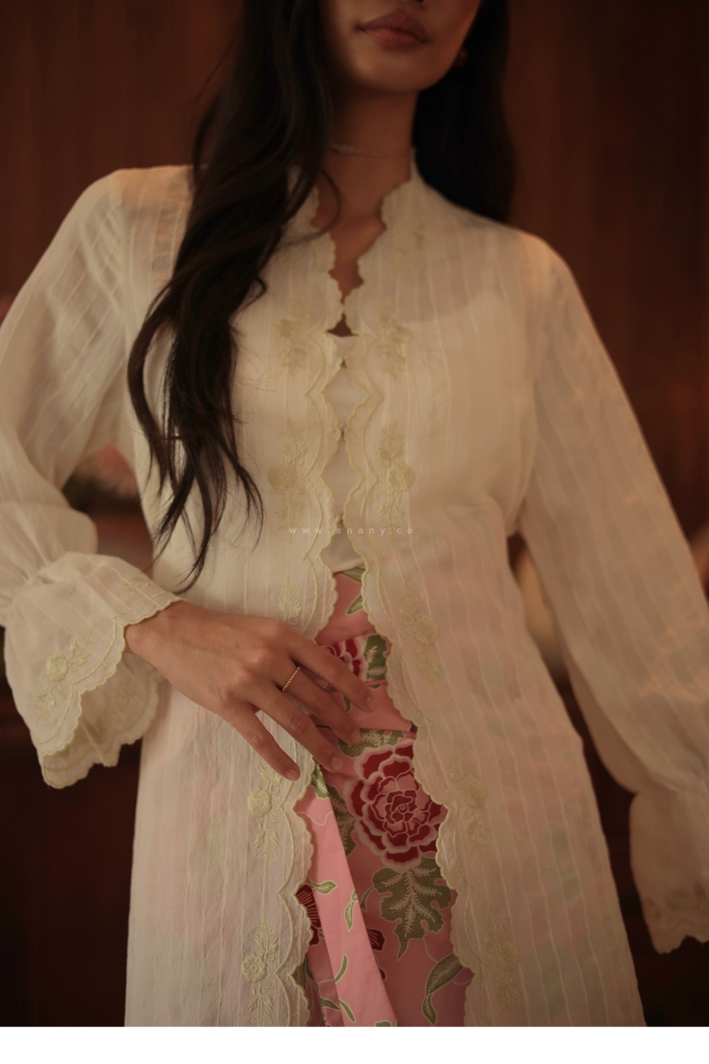 Long Kebaya adorned with custom embroidery detailing