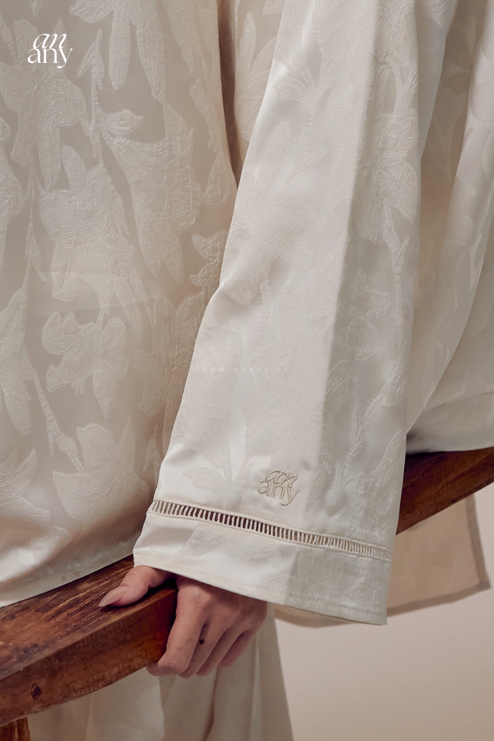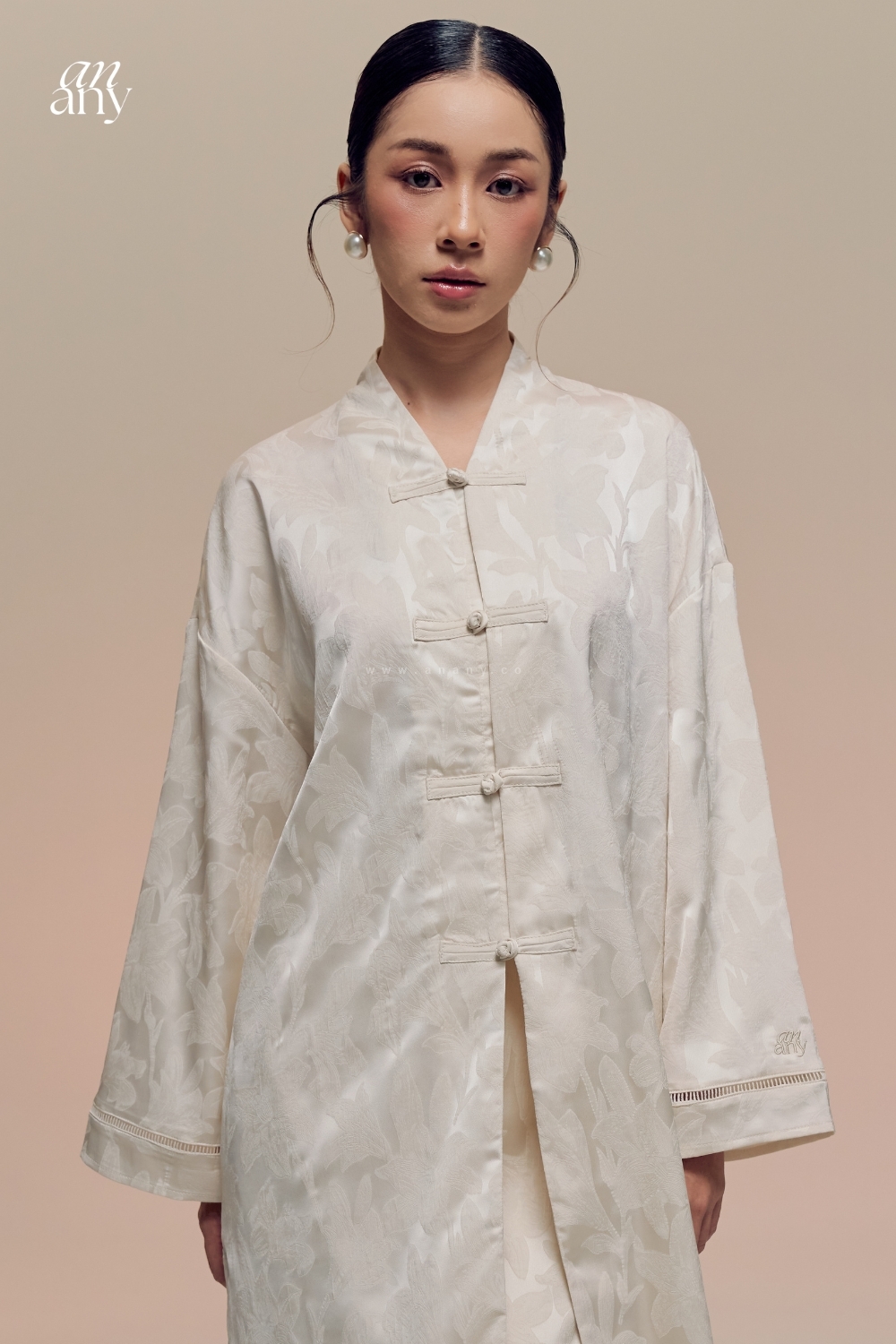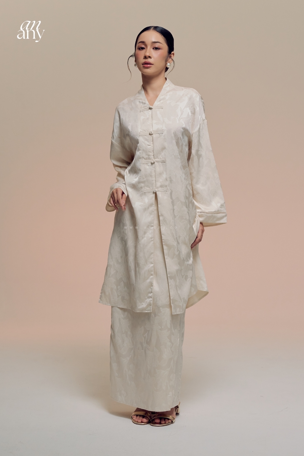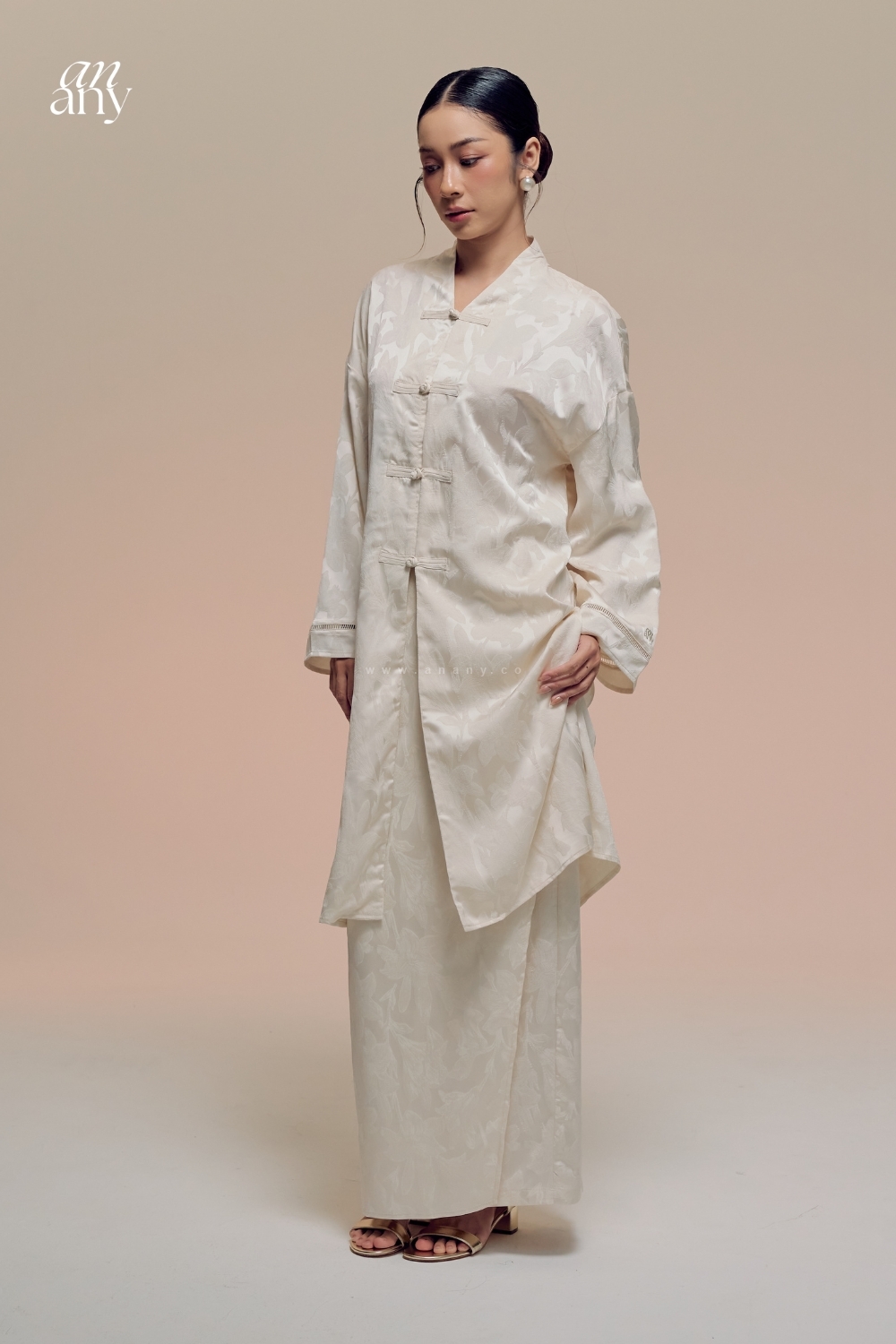 "Damai " Kurong Belah Panjang A long, flowing silhouette that embodies calm and continuity. Rooted in the modest elegance of the Malay kurung Belah or Kurung Panjang, with gentle influences drawn from Chinese frog button closure. Damai Kurung Panjang is a reflection of unity,where culture meets, and harmony remains.